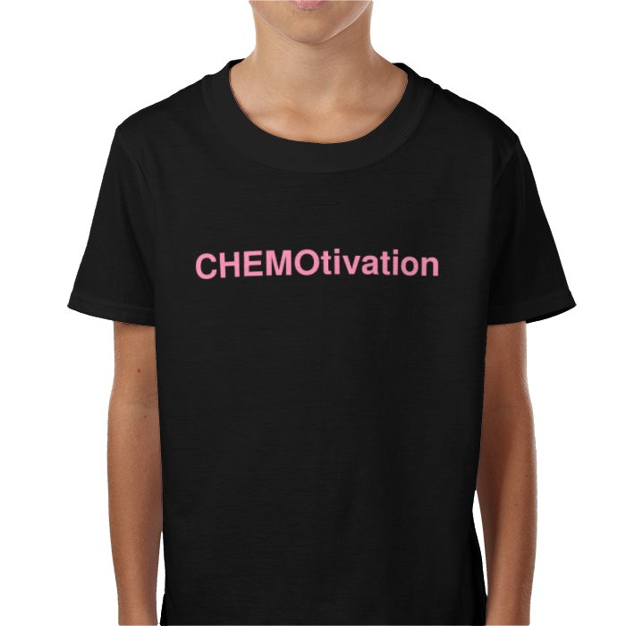 Our black CHEMOtivation T Shirt. Also available in pink and in a variety of sizes. For black or children’s sizes please see additional listings.