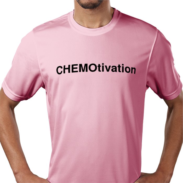 Our pink CHEMOtivation T Shirt. Also available in black and in a variety of sizes. For black or children’s sizes please see additional listings.
